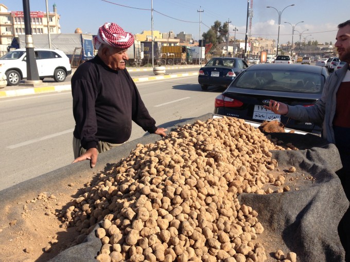 A man collects truffles, in a desert south of Baghdad. Even though they are formed underground, the fruit bodies of desert truffles are not very deep and can be visible to the trained eye. (Credit: Reuters/Mohammed Ameen)
