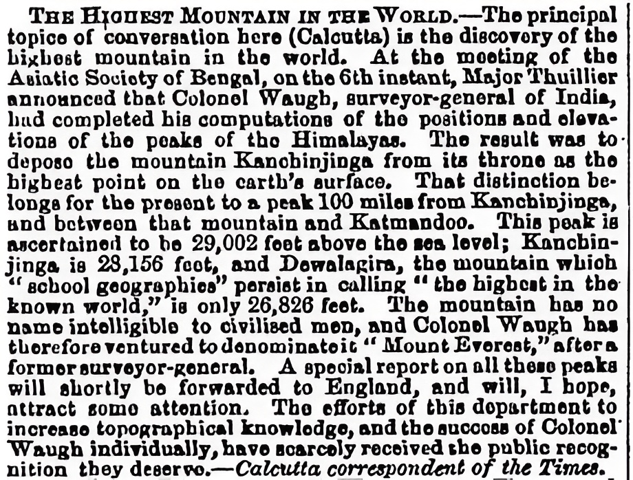 “Sir,” he is said to have declared, unable to contain himself, “I have discovered the highest mountain peak on Earth.”